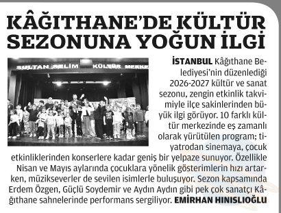Kâğıthane Belediyesi’nin 2026-2027 kültür ve sanat sezonu kapsamında hazırladığı program, ilçe...
