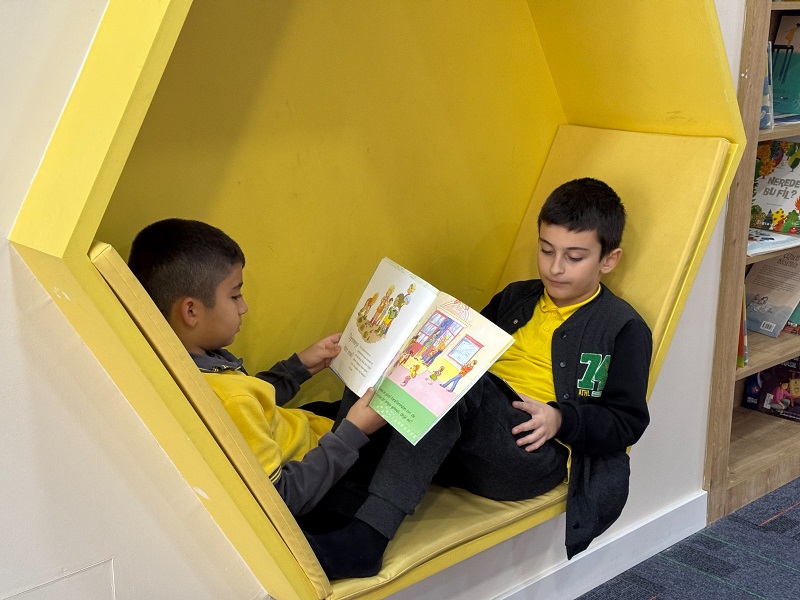Kütüphane, akıllı tahta desteğiyle ders çalışma imkânı sunarken, tematik okuma alanları sayesinde çocukların hayal gücünü geliştiriyor. Ayrıca okul öncesi yaş grubuna özel hazırlanan renkli bölümler, boyama kitapları ve oyun köşeleriyle küçük ziyaretçilere eğlenceli vakit geçirme fırsatı sağlıyor.