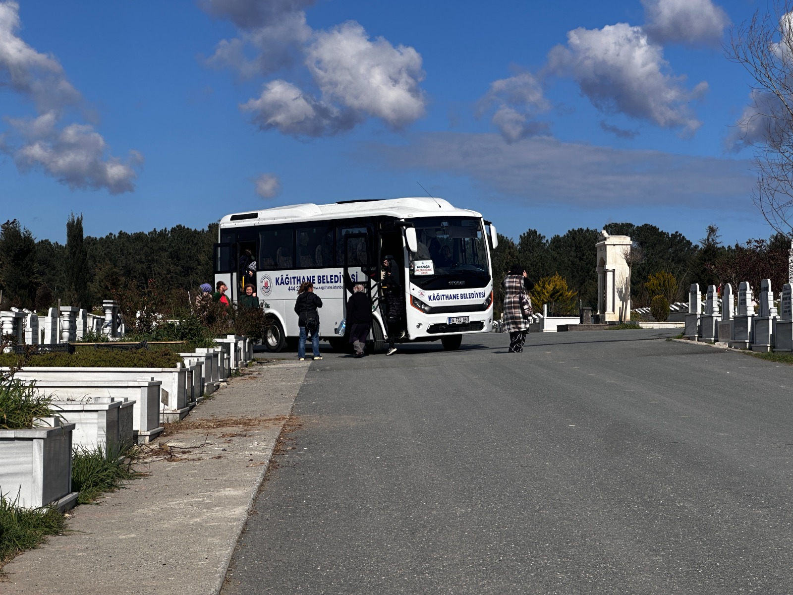 Kâğıthane Belediyesi, Ayazağa, Hasdal ve Kilyos mezarlıklarında bulunan yakınlarının kabirlerini ziyaret etmek isteyen vatandaşlara yönelik ücretsiz ulaşım hizmetini sürdürüyor. Kâğıthane’nin 19 mahallesinden kaldırılan servis araçları sayesinde vatandaşlar mezarlıklara kolaylıkla ulaşabiliyor.
