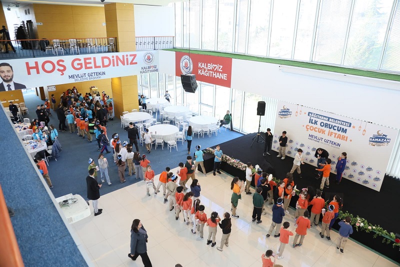 Kâğıthane Belediyesi’ne ait Kültür Merkezi’nde gerçekleştirilen program, küçük yaştaki çocukların oruçla tanışmasını sağlamak ve ramazan bilincini erken yaşta kazandırmak amacıyla hazırlandı. Etkinlikte çocuklara köfte, pilav, patates, tatlı ve meyve suyundan oluşan iftar menüsü ikram edildi. Program kapsamında ayrıca patlamış mısır ve pamuk şeker dağıtılırken, çocuklara ramazan temalı hediyeler verildi.
