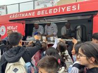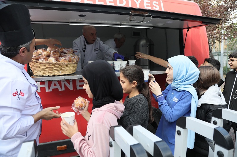 Kâğıthane Belediyesi, okulların çıkış saatlerinde öğrenciler ve aileleri için mobil büfe araçlarıyla sıcak çorba ikramında bulunuyor.