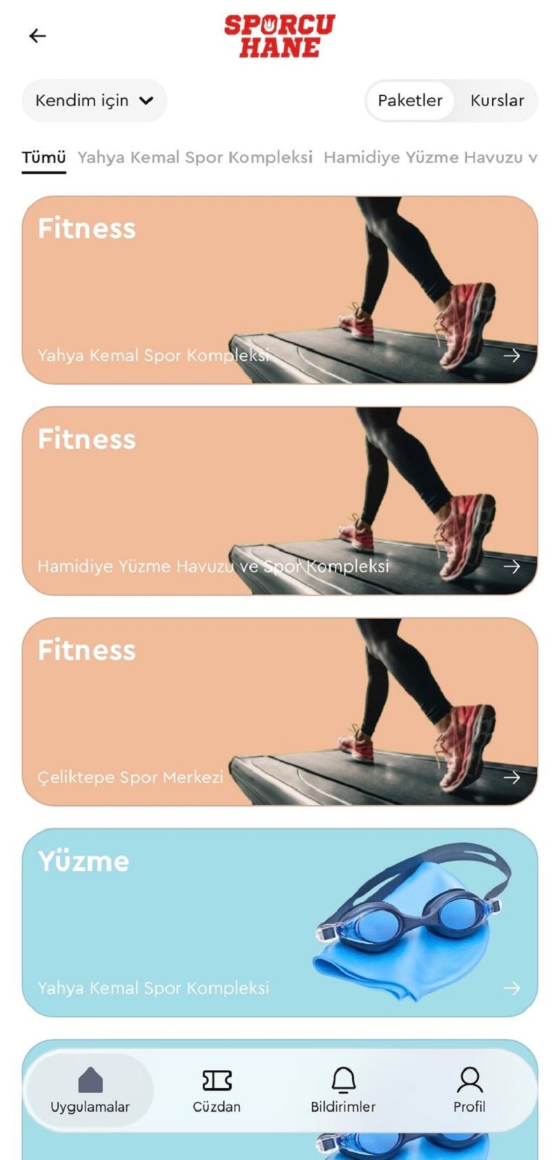 Sporcuhane modülü ile yüzme ve fitness başta olmak üzere birçok spor aktivitesine katılım sağlanabiliyor; onlarca branşta açılan eğitimlere hem bireysel hem de aile üyeleri adına kolayca başvuru yapılabiliyor.