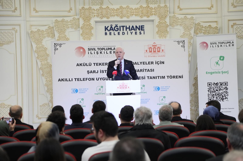 Kâğıthane Belediyesi ev sahipliğinde, İstanbul Valiliği ile Açık Veri ve Teknoloji Derneği iş birliğiyle hayata geçirilen “Engelsiz Şarj” projesinin tanıtım toplantısı Kâğıthane Belediyesi Nikâh Salonu’nda gerçekleştirildi.
